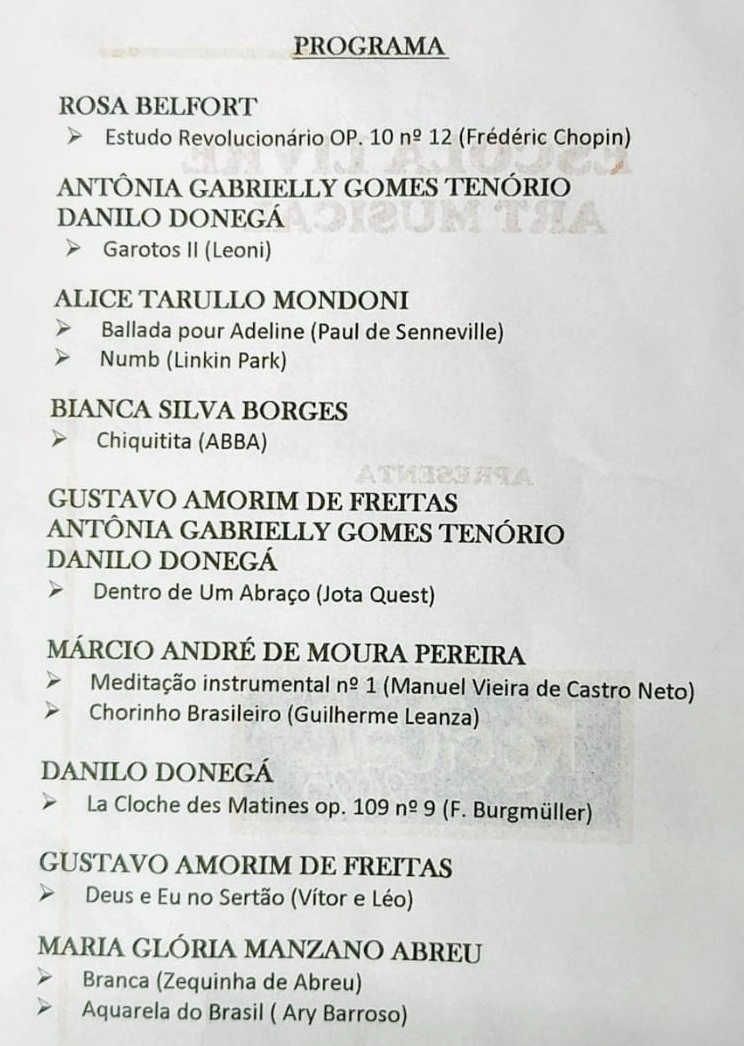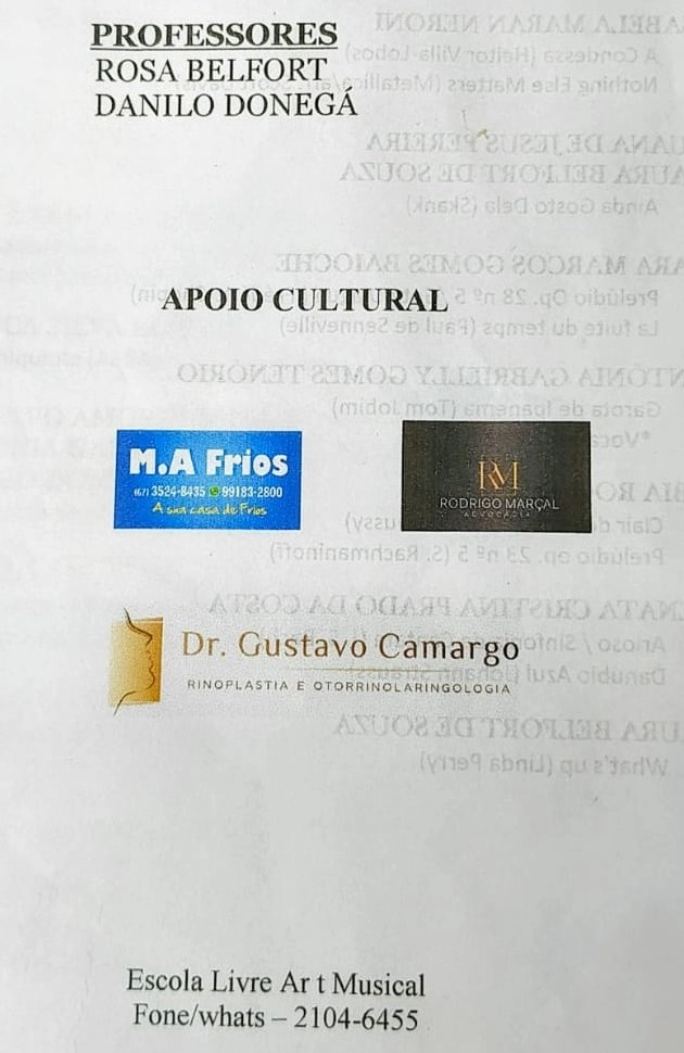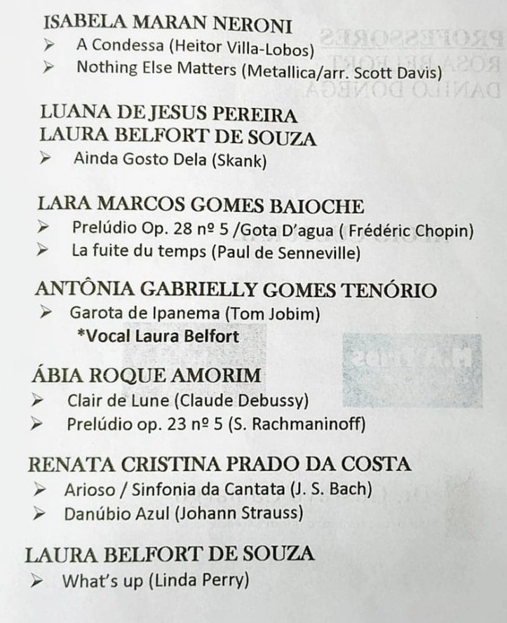O recital da escola um evento totalmente gratuito e aberto ao público.
