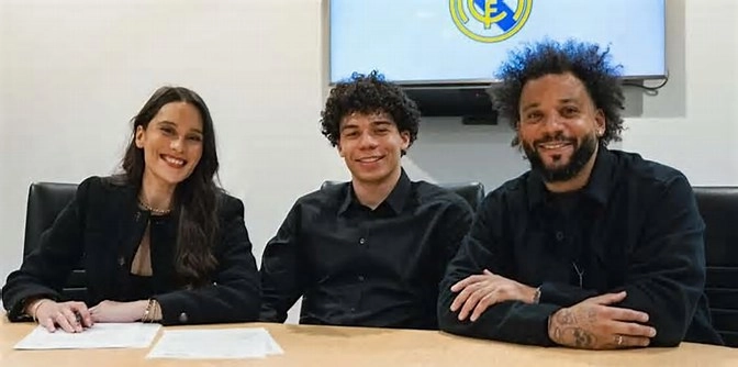 A assinatura do contrato contou com a presença do pai, Marcelo, da mãe Clarice e do irmão mais novo, Liam Alves, no centro de treinamento do Real Madrid. Ídolo do clube, Marcelo defendeu o time por 16 temporadas e conquistou títulos históricos, incluindo cinco Champions League.