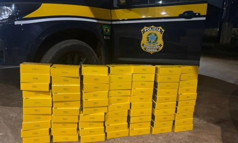 A Polícia Rodoviária Federal apreendeu 70 celulares transportados sem documentação fiscal em Água Clara, durante uma fiscalização na BR-262, na quinta-feira (23).