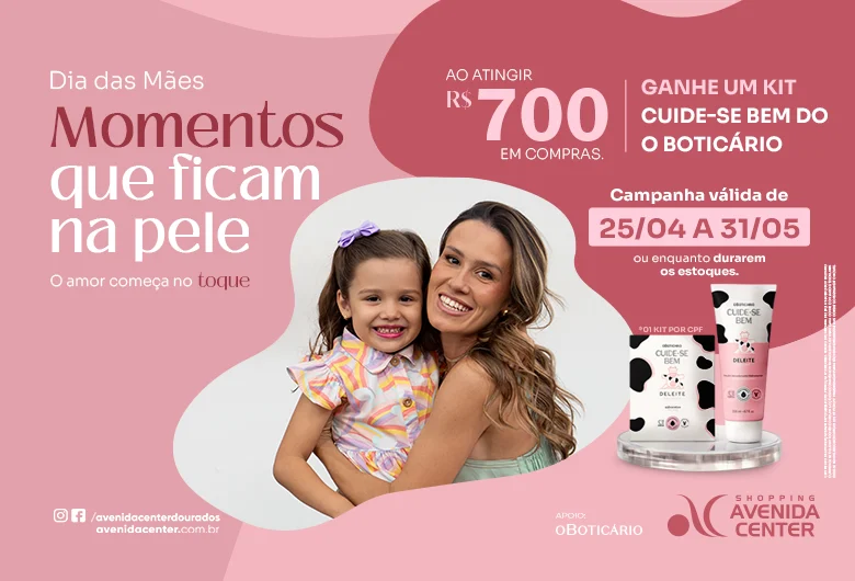 O Shopping Avenida Center iniciou a campanha de Dia das Mães 2026 com uma proposta que une emoção, experiência e benefício ao consumidor. Com o conceito “Momentos que ficam na pele. O amor começa no toque”, a ação busca valorizar os gestos e lembranças dessa relação especial.