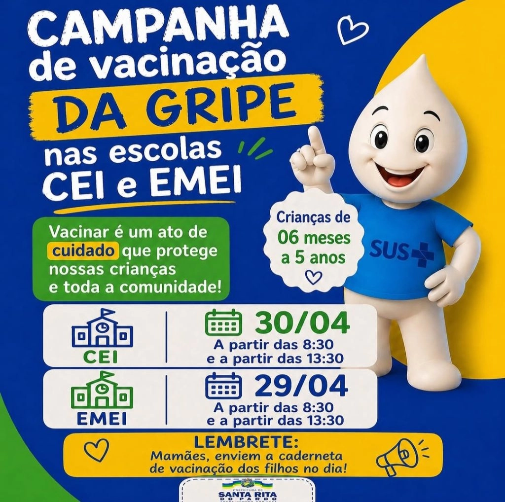 A Prefeitura de Prefeitura de Santa Rita do Pardo iniciou uma campanha de vacinação contra a gripe diretamente nas escolas da rede municipal, com o objetivo de ampliar a cobertura vacinal entre crianças de 6 meses a 5 anos. A ação contempla unidades de Centro de Educação Infantil e Escolas Municipais de Educação Infantil, facilitando o acesso das famílias à imunização.