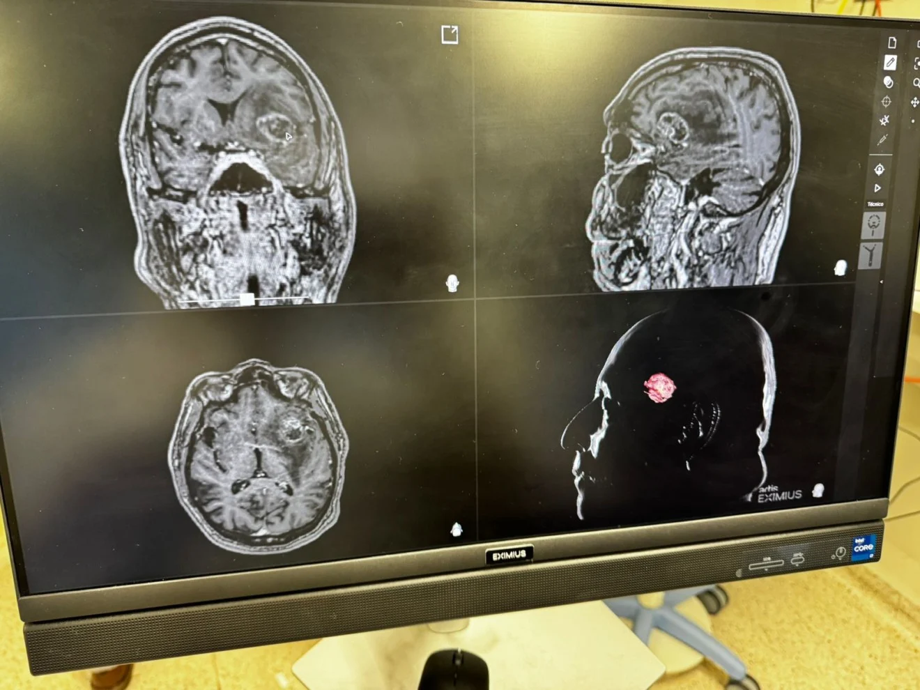 Durante o procedimento, a equipe utiliza a neuronevegação, tecnologia semelhante a um “GPS intracraniano”, que permite localizar a lesão com precisão milimétrica e reduzir a manipulação do cérebro.